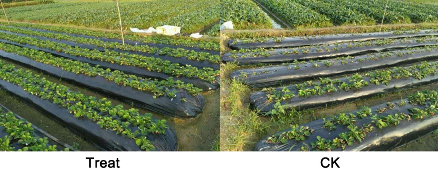 Treat Dora Nemaxe on strawberry field to control nematodes and other root diseases. By Compared Experiments, we can deeply realize the importance of controlling nematodes.